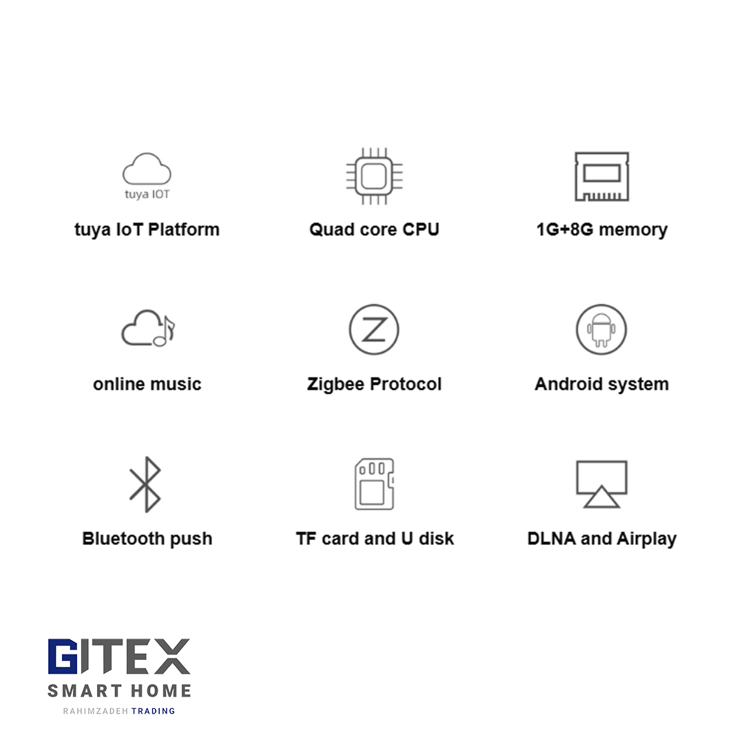 قلب هوشمند این دستگاه، ماژول داخلی Tuya Zigbee است. این ماژول،  کنترل پنل هوشمند اندروید ۴ اینچی را به یک هاب مرکزی تبدیل کرده و به آن اجازه می‌دهد تا مستقیماً با بیش از صدها دستگاه هوشمند مبتنی بر پلتفرم Tuya (از جمله لامپ‌ها، کلیدها، سنسورها، پرده‌ها و …) ارتباط برقرار کرده و آن‌ها را مدیریت کند. همچنین این پلتفرم از دستیارهای صوتی محبوبی مانند الکسا (Alexa) و گوگل (Google Assistant) پشتیبانی می‌کند.